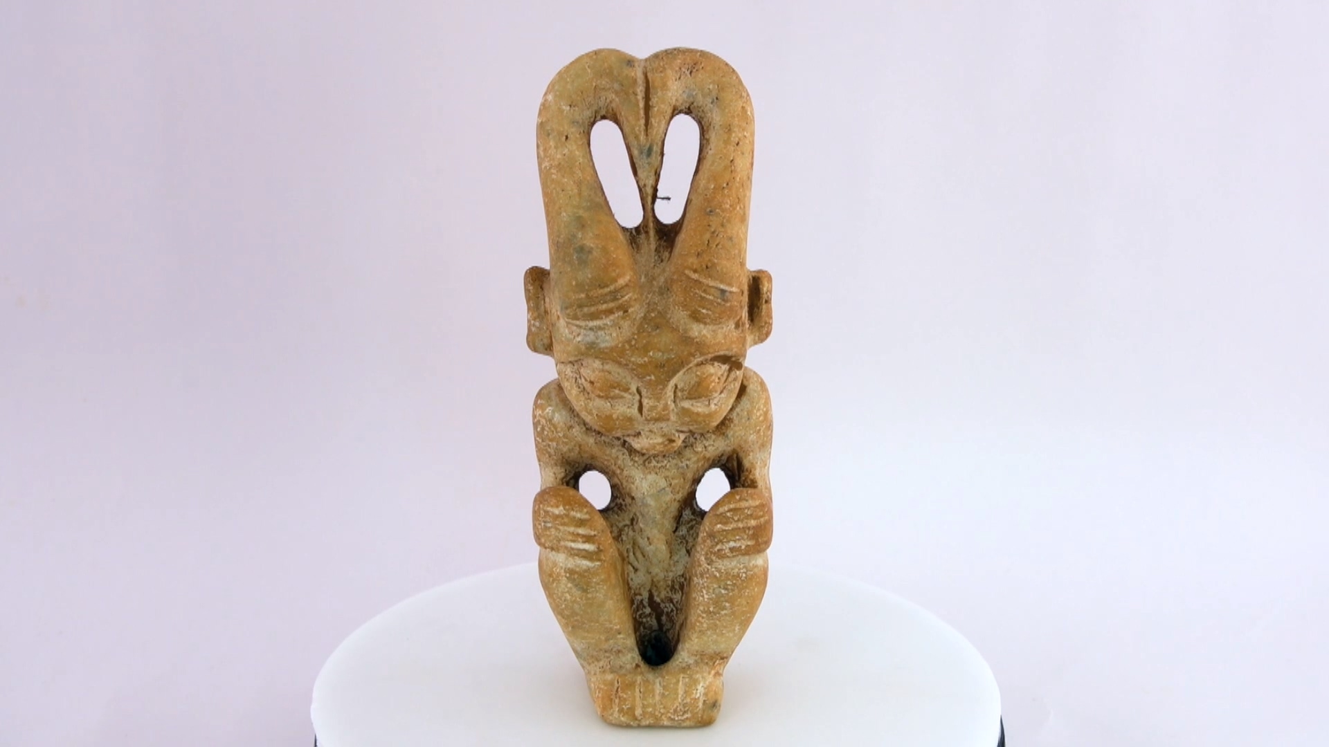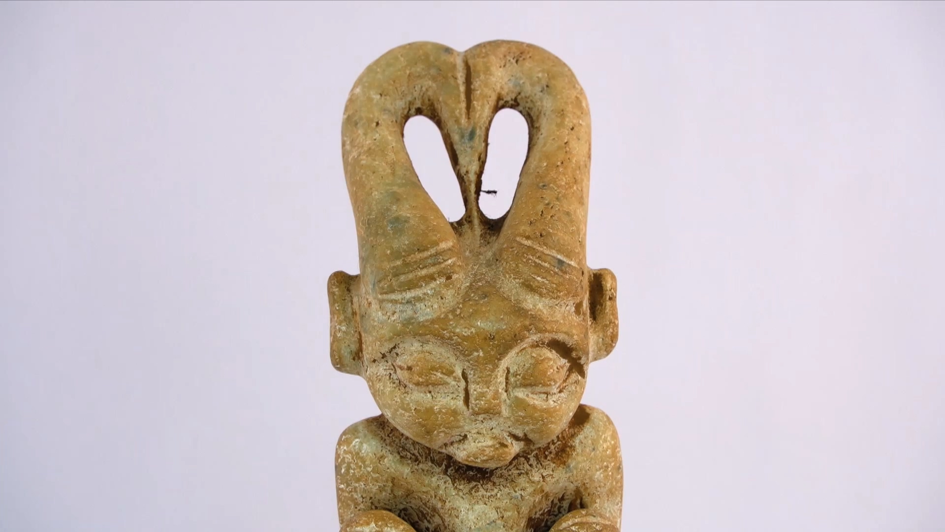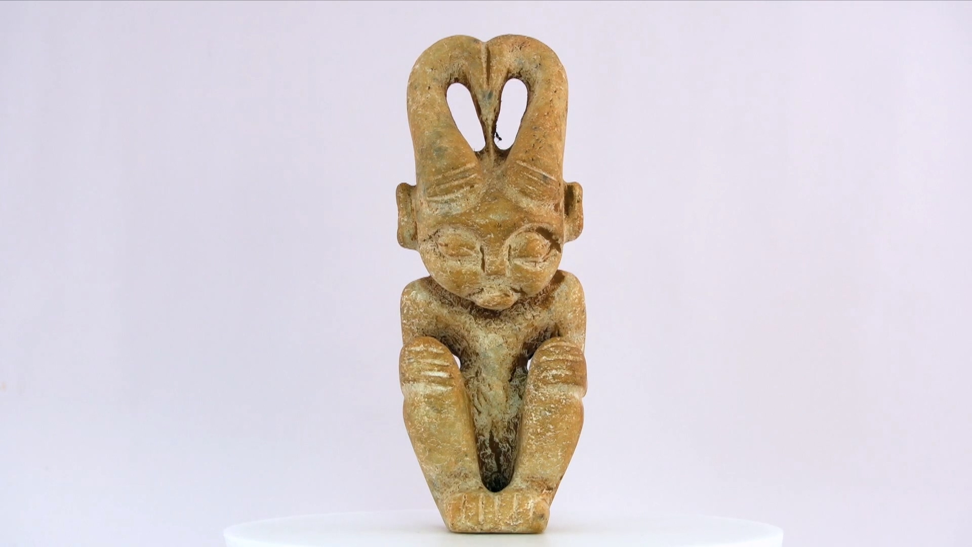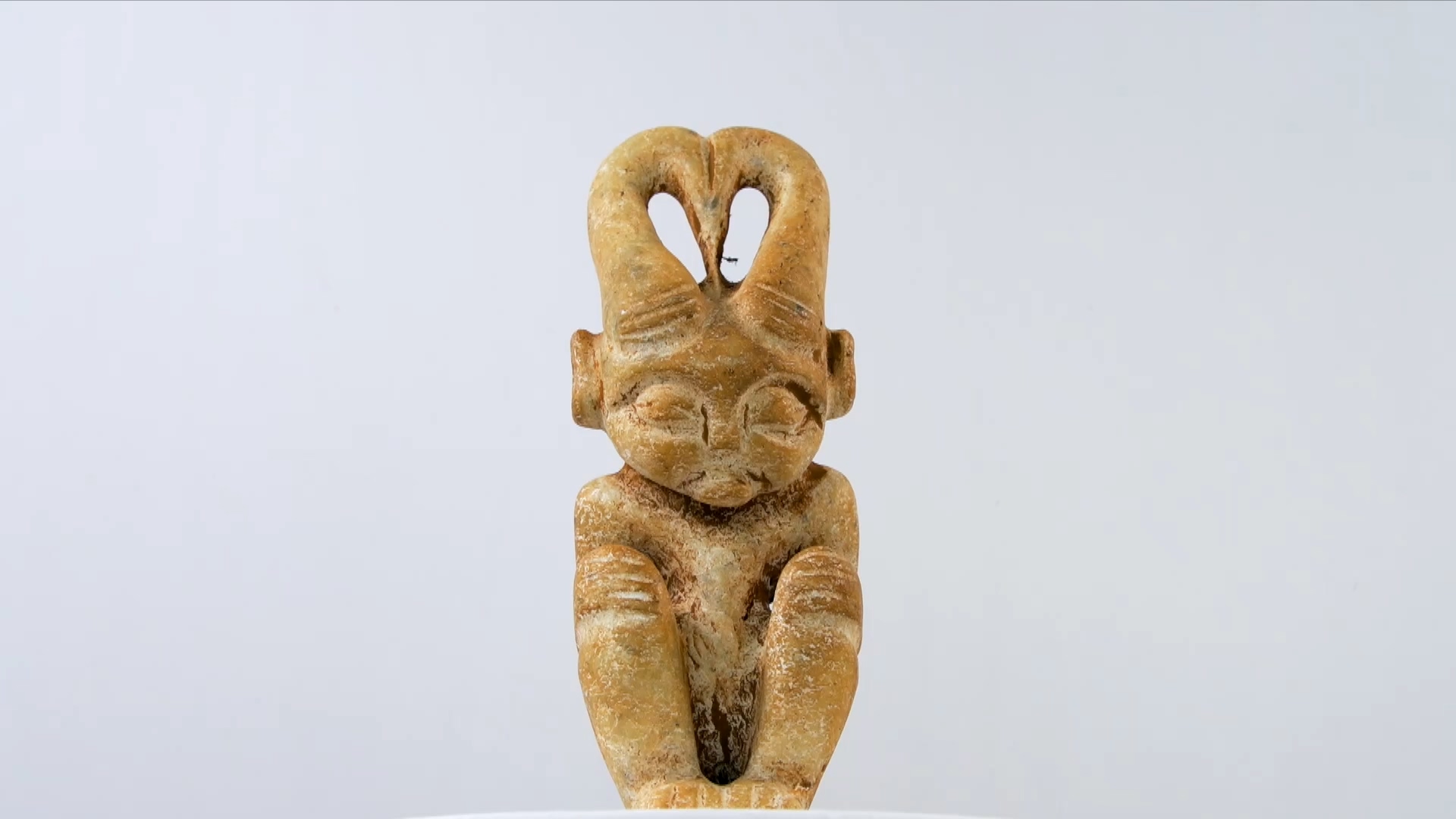 鹿角一直是中國文化中的重要元素,而在這個石像中,鹿角被巧妙地結合到人的形象中。石像的面孔和眼睛都被精心雕刻,仿佛在表達某種深刻的情感或思想。鹿角和人的結合,使得這件石像更加神秘和有趣。