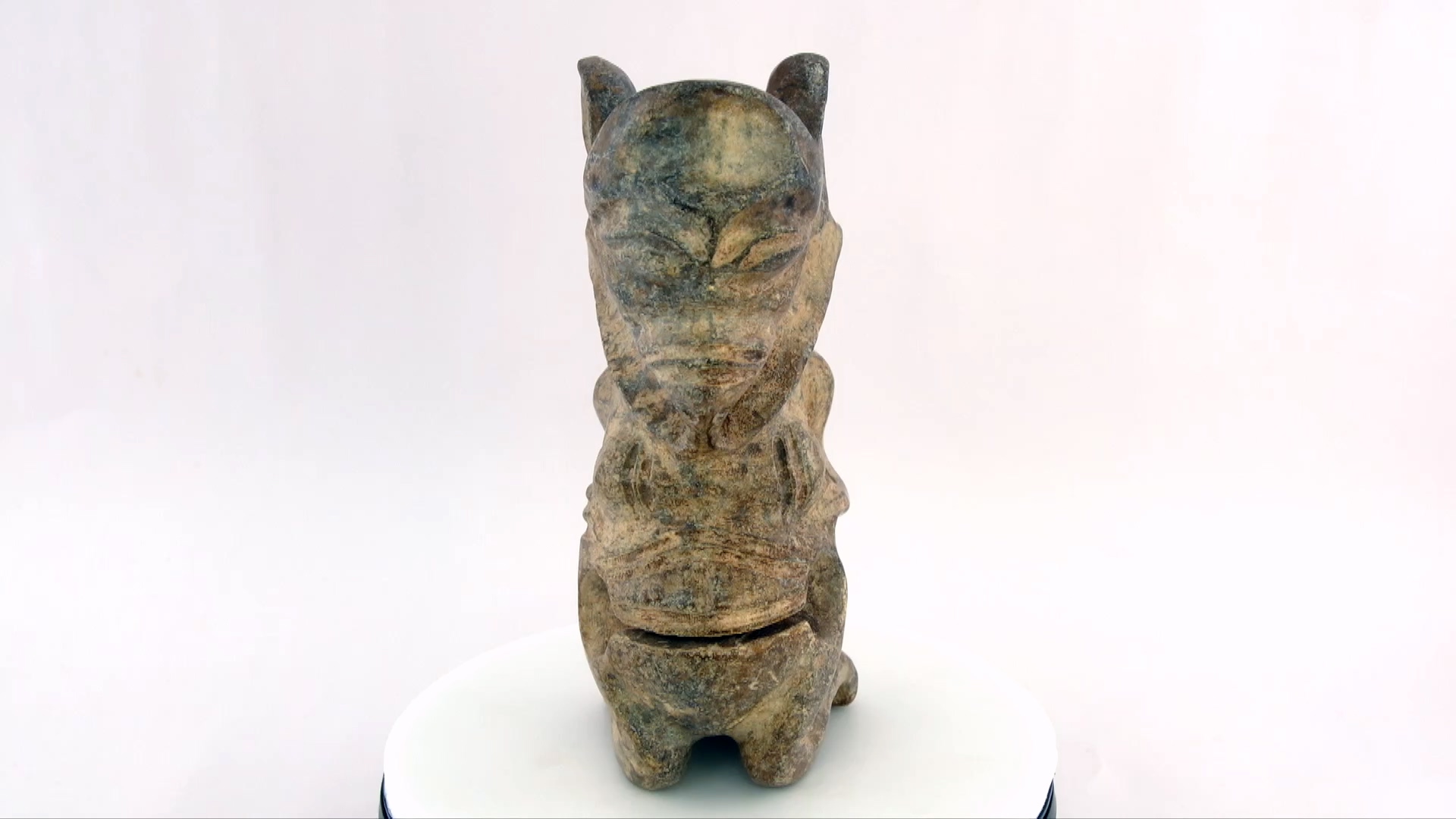 這個骨董石像是非常珍貴的文化遺產,代表了南美洲古代文明的獨特美學和藝術風格。它不僅是一個重要的歷史紀念物,也是一個藝術品收藏家夢寐以求的珍品。這個面具臉石像不僅是一個美麗的展示品,更是一個窺探古代文明的窗口,讓人們能夠深入了解和欣賞這段文化的輝煌歷史。