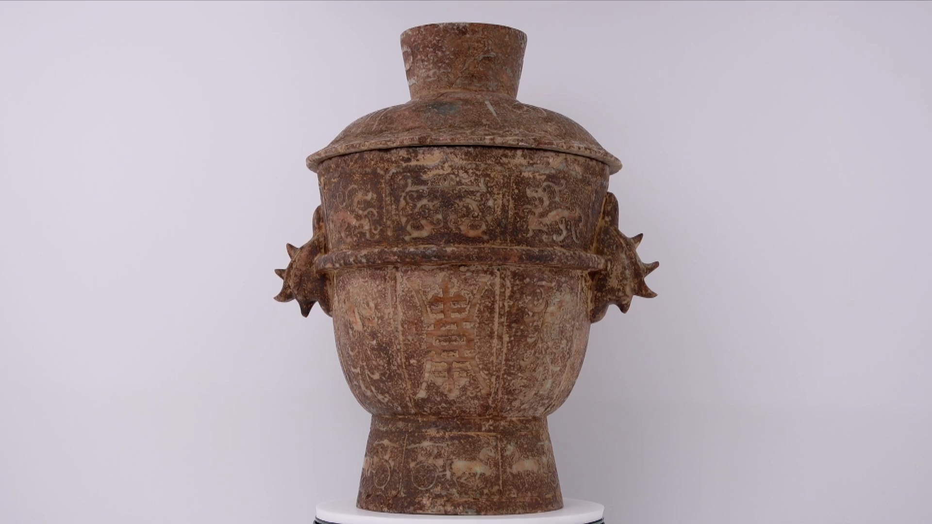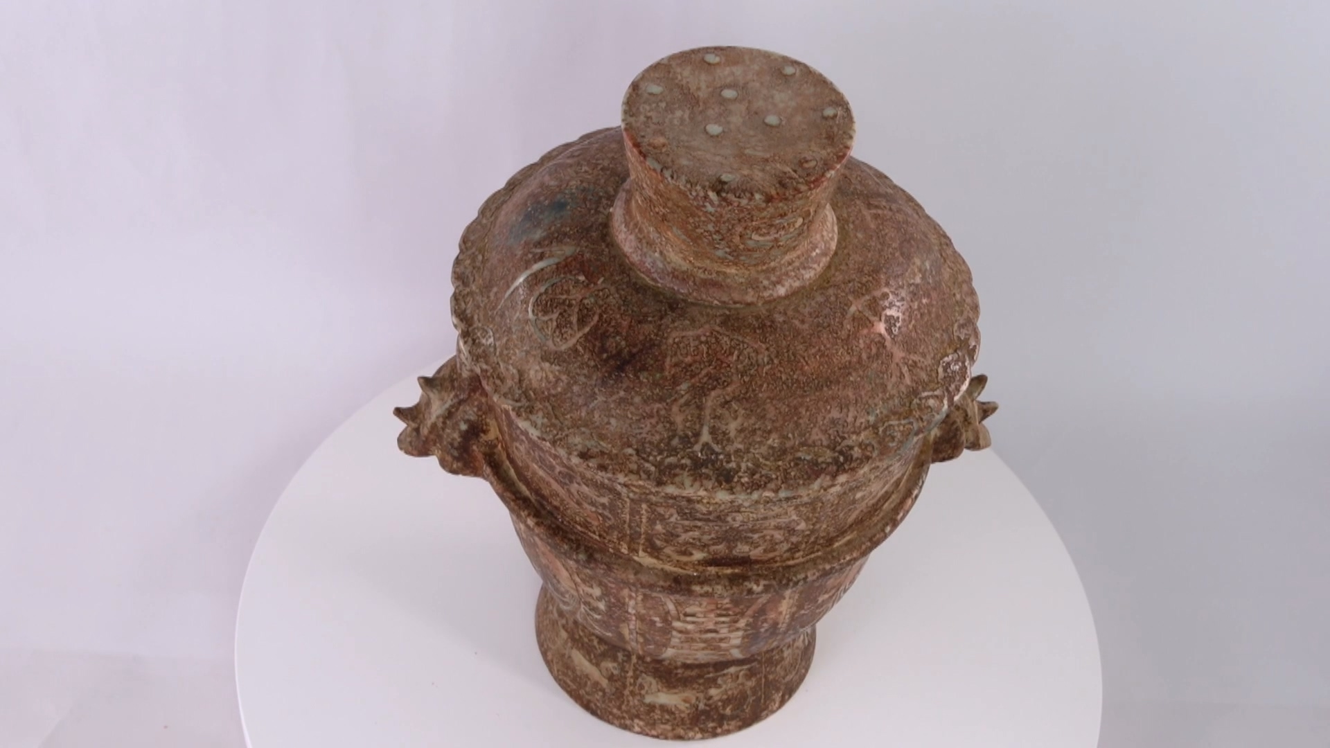 這個含蓋的骨董甕是一件十分精美的藏品,底部雕刻著馬車的圖像,細節十分逼真。這個骨董甕的造型呈圓柱狀,上下兩端大小相當,整體設計極具平衡感。甕的材質是精緻的陶瓷,通體呈現出深淺不一的棕色和褐色調,顯示出精湛的手工製作技巧。